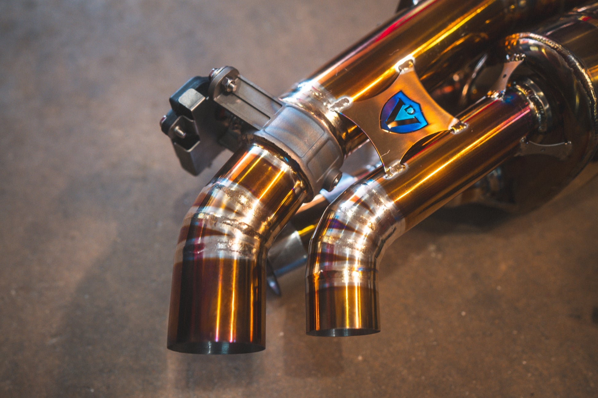The 992 platform is the performance car benchmark. Being amazing at every task is no small feat, but just like all turbo Porsches, it leaves much to be desired in the sound department. We solve the sound issue but our sport and race configuration. When the valves are opened, the exhaust gas passes unrestricted through our ex pipe and out so you get the most raw and aggressive sound characteristics. Be ready for aggressive overrun, and naturally aspirated type sound. The free-flow nature of the exhaust system makes your 992 sound like a 917 ripping by on the racetrack. This experience brings the magic out of the platform. When running in the valves closed mode, sound passes through our quad-chambered muffler in order to lower sound levels significantly. It's time to make your 992 sound like it always should have!